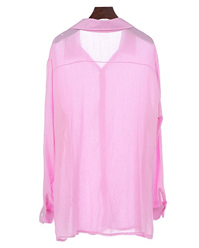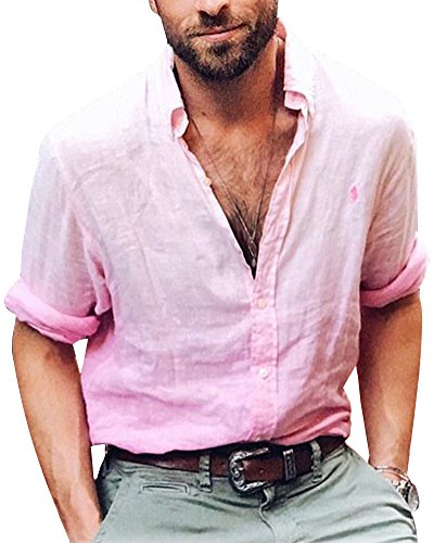ShallGood Camicie da Uomo Allentata Comode E Traspiranti Lino Maniche Lunghe Stile Slim Estivo Slim Grandad Collar Spiaggia Camicie Shirts Rosa X-Small