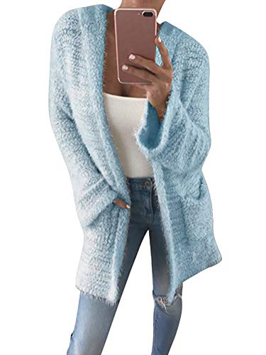 ShallGood Cardigan Donna Invernale Elegante Maglione Cappuccio Cappotto Anteriore Aperto Faux Lungo Vintage Caldo Maglie Outwear Felpa Top con Tasca Blu IT 42