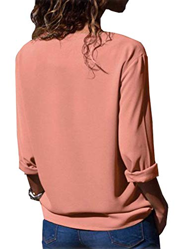 ShallGood Donna Camicetta Blusa Chiffon Elegante Camicia Casuale Solido Maniche Lunghe Chiusura a Bottoni con Scollo V Asimmetrico Tops T Shirt Primavera E Autunno A Rosa IT 50