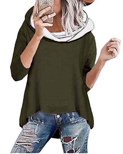 ShallGood Donna Casual Autunno e Inverno Felpa con Cappuccio Oversized Maniche Lunghe Sweatshirt Hoodies Hoody Pullover Cappotto Verde IT 44