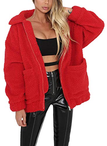 ShallGood Donna Invernali Eleganti con Cappotto Maglione Vintage Cappotto Lungo con Zip in Lana Caldo Tinta Unita Cotone con Cappuccio Giacca Trench Jacket Outwear Rosso IT 46