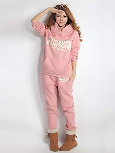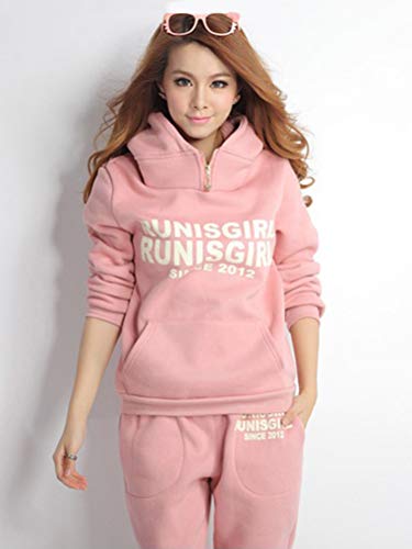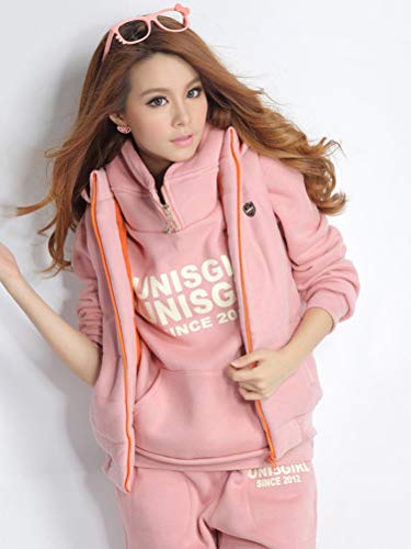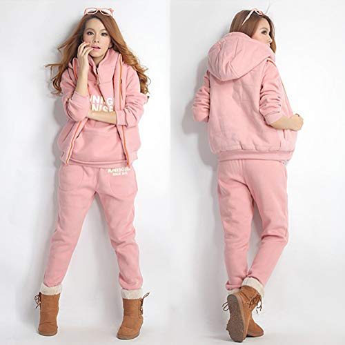 ShallGood Donna 3 Pezzi Felpa Tute Pullover Spesse Felpa Cappotto Invernale Tuta Training Ispessisce Hoodie Jogging Sportiva Giacca Gilet + Felpa con Cappuccio + Pantaloni Rosa IT 42