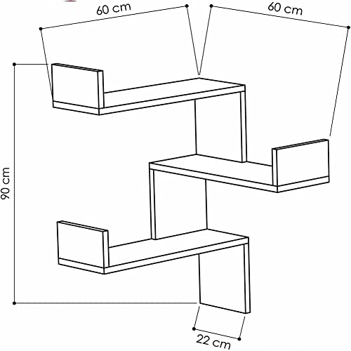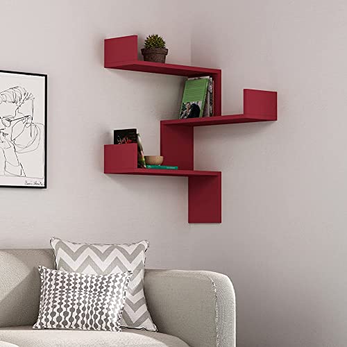 Shally Dogan Mensola Angolare a 3 Piani, Scaffale ad Angolo per Parete, Organizer Salvaspazio Design Moderno, Arredamento Interno, Ideale per Casa, Ufficio, Dimensioni 60 x 22 x 90H cm (Bordeaux)