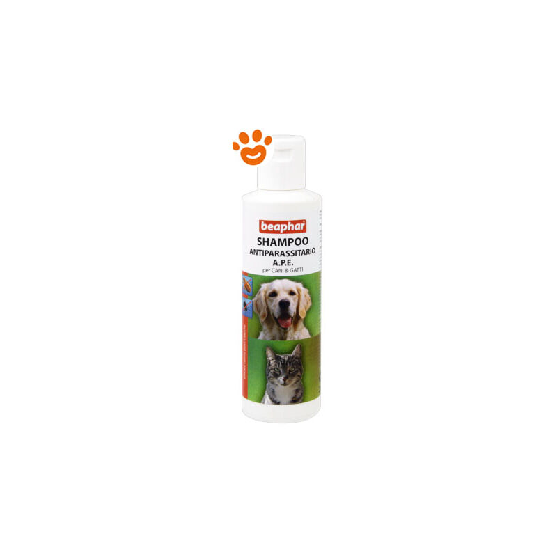 Beaphar Shampoo Antiparassitario specifico per il trattamento di zecche e pulci del cane e del gatto. Consigli di Utilizzo Si applica sul mantello bagnato dellanimale e lo si lascia agire per 5 minuti prima di risciacquare. Alloccorrenza ripetere il trattamento 2 volte a settimana. Punti di Forza Beaphar Shampoo antiparassitario specifico per il trattamento di pulci e zecche del cane e del gatto. Può essere utilizzato dal terzo mese detà in poi. Precauzioni d'Uso Shampoo per uso esterno. Non ingoiare. Evitare il contatto con gli occhi dell'animale. In caso di contatto con gli occhi sciacquare subito con acqua abbondante.