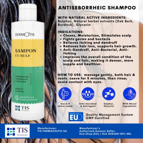 SHAMPOO DERMATITE, LENISCE E IDRATA: Shampoo Antiforfora TIS combatte efficacemente la forfora persistente e può essere utilizzato anche per alleviare problemi più spiacevoli, come la dermatite seborroica e anche cuoio capelluto soggetto a psoriasi. Deterge i capelli, rimuove la forfora, il prurito e l'irritazione del cuoio capelluto. Gli shampoo hanno il ruolo di normalizzare la
