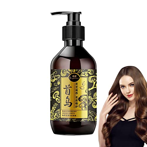 Shampoo per oscurare i capelli, 300 ml He Shou Wu Black Ganoderma Shampoo per capelli | per capelli neri e spessi per promuovere la crescita dei capelli Fulenyi