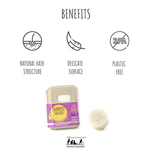 Shampoo Solido Artigianale e Naturale 55 g - Rispetta la Struttura del Capello - Privo di Allergeni e 100% Vegan - per Bambina - Talco e Olio di Mandorle