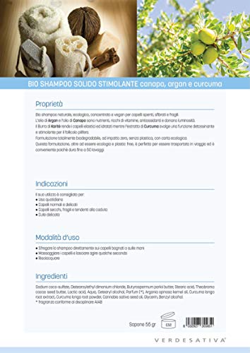BIO Shampoo SOLIDO Canapa, Argan e Curcuma - Bio & Vegan - Stimolante e nutriente - plastic free - no waste - biodegradabile ed altamente dermocompatibile