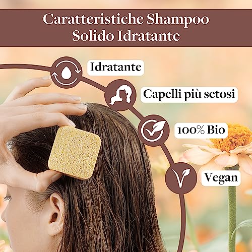 Shampoo Solido Bio Idratante per Capelli Secchi e Sfibrati con Argan e Olio di Cocco, 100% Artigianale Biologico Italiano Naturale Vegano Ecologico