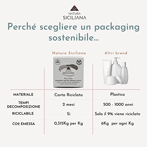 Questo speciale shampoo solido contiene tensioattivi a base di cocco. In combinazione alla pietra lavica e burro di Karitè, deterge, nutre e purifica il cuoio capelluto e lascia i capelli puliti, luminosi e districati. Fabbricato artigianalmente in Sicilia alle falde dell'Etna.
