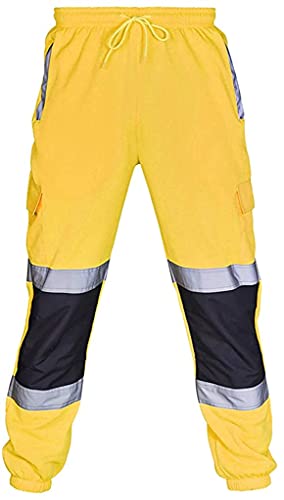 ShangSRS Pantalone da Lavoro Estivo Uomini Pantaloni Alta visibilità Pant PL HV Pantaloni Riflettenti in Esecuzione Pantaloni Jogging Ciclismo Cane Che Cammina di Notte (Giallo, L)