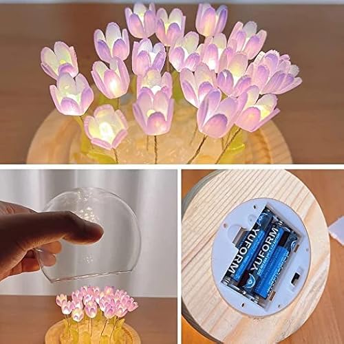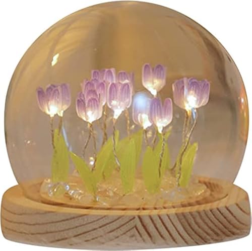 Materiali di alta qualità: La luce del fiore è costituita da vetro di qualità, base in legno, luce della stringa LED, ecc. robusta e duratura, non facile da rompere o indossare, la copertura in vetro è facile da pulire e mantiene la lampada dalla polvere, conveniente per l'uso quotidiano.