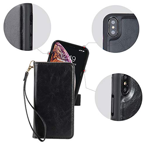 SHANSHUI - Custodia per iPhone XS Max, 2IN1 con Doppia Protezione Estraibile in Pelle Sintetica con Blocco RFID 2 possibilità di Posizionamento Chiusura Magnetica (Nero)