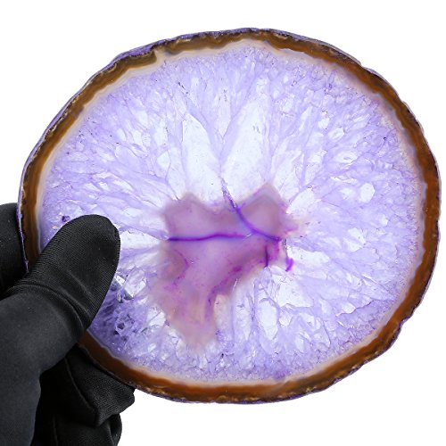 Shanxing, set di 2 sottobicchieri in fette di geode di pietra di agata naturale per bevande, sottobicchieri per tazze in quarzo da 7,6 cm a 9,9 cm #1-Purple