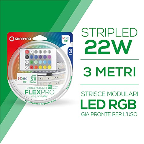 Shanyao - 3mt Strip Plug & Play LED Hi.Smart 22W RGB regolabile con Telecomando, interruttore on/off, già cablato con Controller e alimentatore Inclusi,Senza controllo WI-FI.