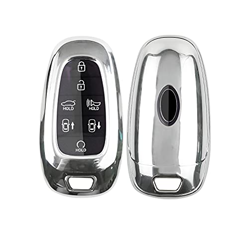 SHAOHAO compatibile con Hyundai Tucson NX4 2021 2022, IONIQ 5 Custodia per chiavi, in silicone TPU, colore argento cover chiave