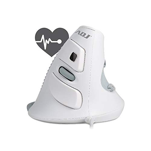 ADJ Shark Mouse USB Cablato Verticale Ergonomico, Tasto per Battito Cardiaco, Impugnatura Verticale e Design Ergonomico Previene il Disturbo del Tunnel Carpale, 600/1000/1600/2000 DPI, Bianco/Grigio