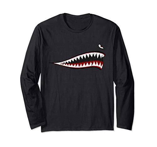 Shark Teeth P-40 Warhawk Nose Art WWII WW2 Airplane Vintage Maglia a Manica