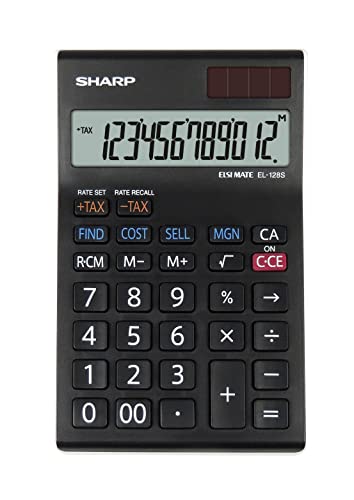 Sharp Electronics EL128SWH - Calcolatrice a 12 cifre, calcolo costo-vendita-margine, bianco/nero