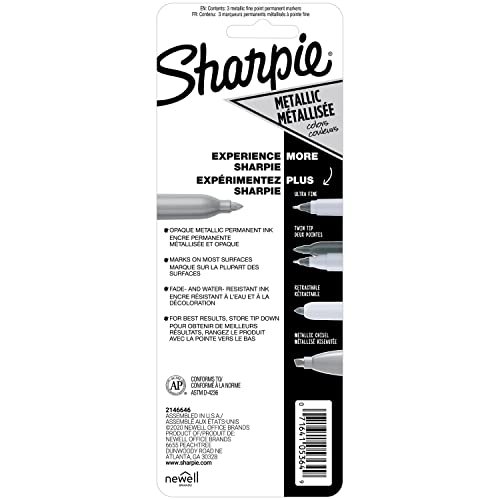 Sharpie Pennarelli indelebili metallici, punta fine 3-Count Metallic Assorted
