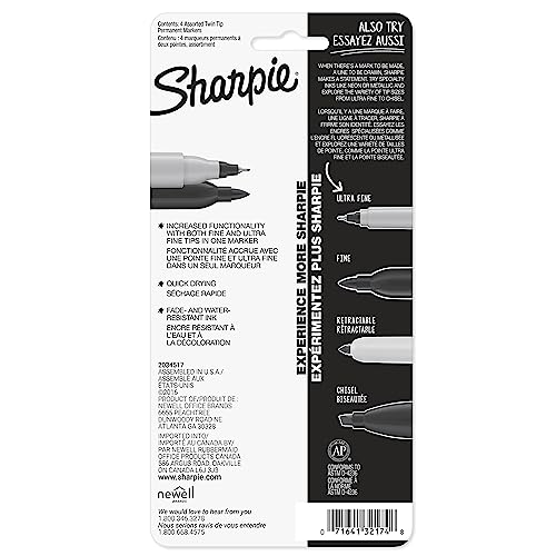 Esperienza marcatori due in uno con il rivoluzionario Twin Tip permanente markerfeatures punta a punta fine per linee sottili, dettagliate su un lato e una ultra fine Point punta per ancora più precise writing on the altri endquick-drying inchiostro è impermeabile, a prova di striscio e fade-resistantap certificata non-toxic4 confezione di pennarelli include 1 di ogni colore: nero, blu, verde e rosso