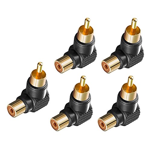 Sharplace 5pz Adattatori Connettori RCA Angolo Retto Maschio a Femmina 90 Gradi Nero - Nero