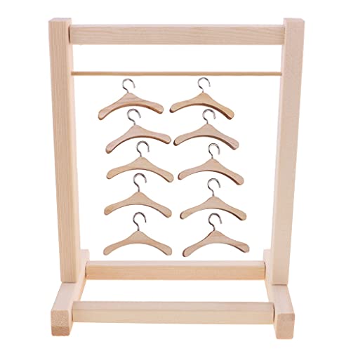 Scaffale in legno fai da te per appendere i vestiti della bambola, 10 pezzi che avvolgono le sospensioni del gancio per 1/6 accessori dei mobili delle bambole.