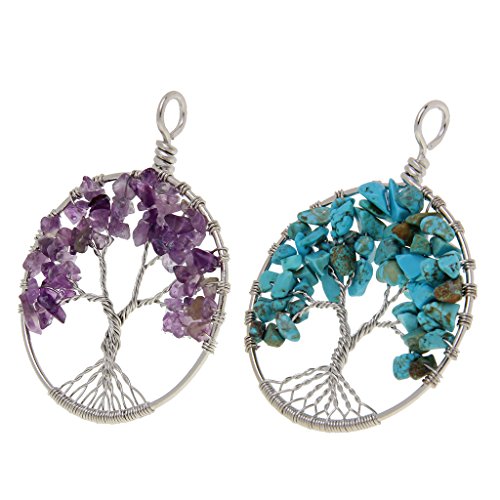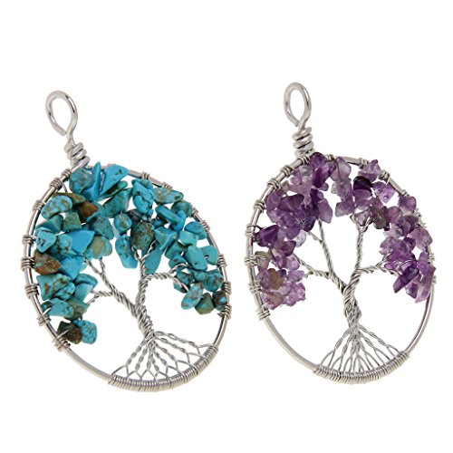 Sharplace 2 Pezzi Viola Blu Cristallo Pietra Albero Modello Ciondolo Rotondo per Gioielli Fai da Te Bigiotteria