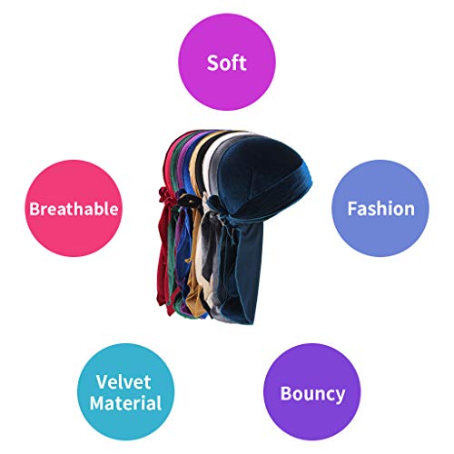 Sharprepublic Cappello Durag Velluto per Uomini Donne - blu pavone, come descritto