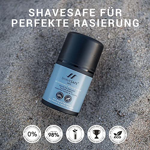 ShaveSafe Aftershave Balm is the perfect finish for the face, scalp and neck irritated by shaving. The organic cream has an antibacterial effect and makes the skin soft, nourishing and supple without bumps, itching and ingrown hair. The cream contains healing cornflower water, is enriched with allantoin, aloe vera, red pile extract, emollient almond oil and cooling menthol. Organic and with natural ingredients. Extremely moisturising.
