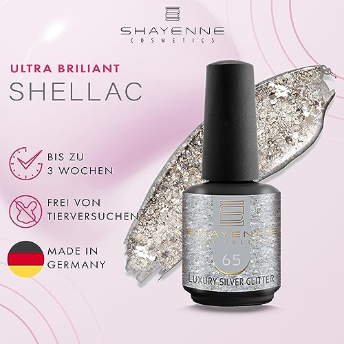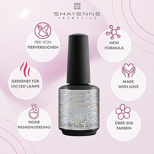 SHAYENNE Shellac Smalto Semipermanente Unghie 15 ml UV LED Lampada | 65 Luxury Silver Glitter Argento | MADE in GERMANY | Gel Nail Polish | Nagel Lack Nagelgel