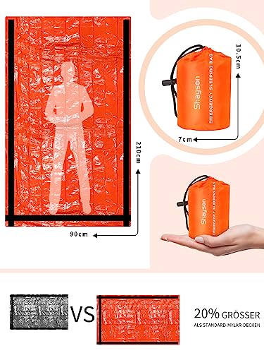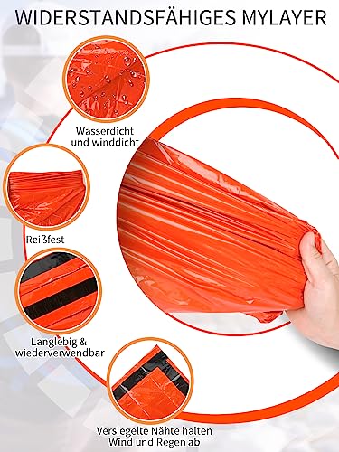 Shayson Sacco a Pelo d'Emergenza,Coperta di Sopravvivenza Riutilizzabile,Isolamento Termico Esterno Arancione Interno Rinfrangente