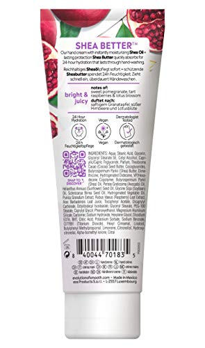 Eos Shea Better Hand Cream Pomegranate Raspberry, cura delle mani idratante, in pratico tubo, con melograno e lampone, per mani morbide, con burro di karitè sostenibile e olio di karitè