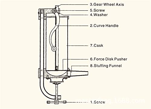 Materiale Premium - Il cilindro di riempimento del sistema di riempimento per salsicce è realizzato in acciaio inossidabile di alta qualità, che garantisce una lunga durata e una perfetta protezione dalla ruggine ed è anche facile da pulire.