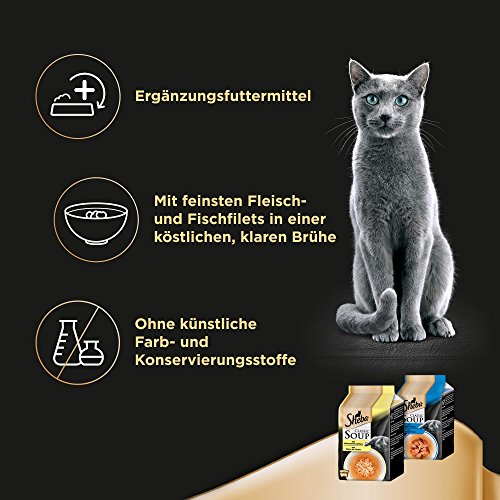 Contenuto della confezione: 34 porzioni da 8 x 40 g Sheba Soup, 18 x 60 g Fresh e fine e 8 x 12 g Sheba Creamy Snack / gusto variabile / mangime complementare e mangime completo