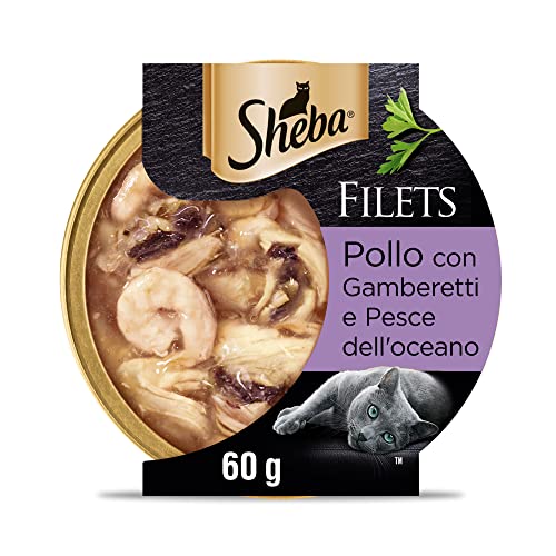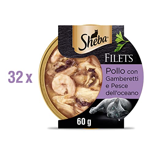Sheba Filets Cibo Umido per gatti con Pollo e Gamberetti, 32 vaschette da 60g ognuna, Totale 1920g
