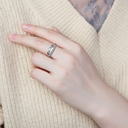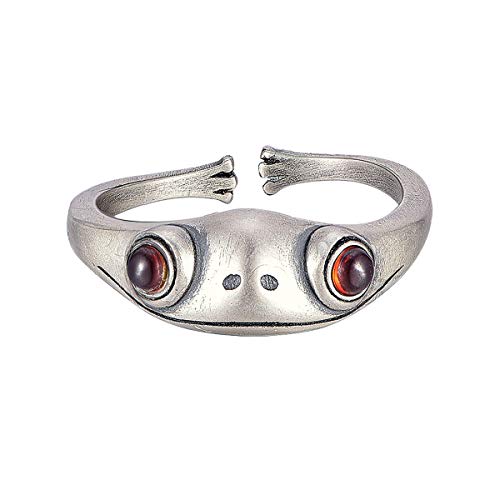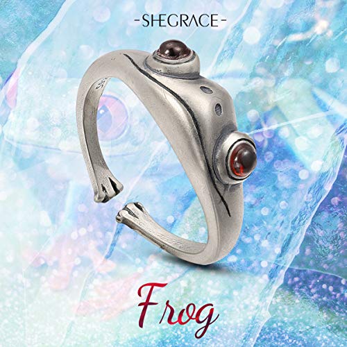 SHEGRACE Anello da Coniglio Aperto Rana Femminile in Argento 925 Placcato Argento retrò + Anello di Giada Rossa/Granato Naturale, Regolabile
