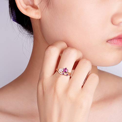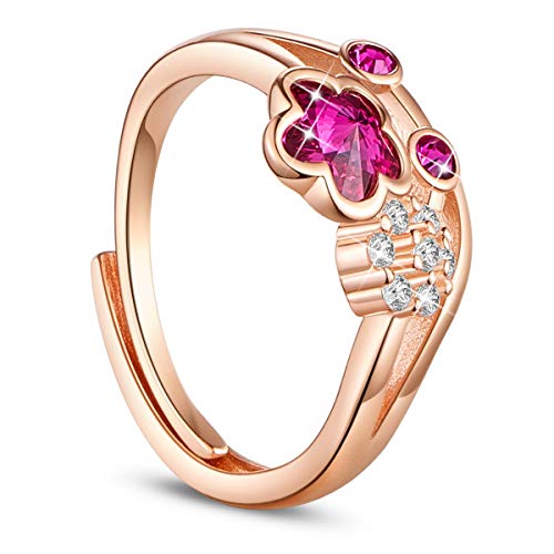 SHEGRACE Anello da Donna in Argento 925 con Zirconia Fiore Rosa Rosso, 18 mm, Regolabile, Anello Donna,Gioielli Donna,Regalo di Festa, Regalo Donna/Ragazza/Moglie/Fidanzata