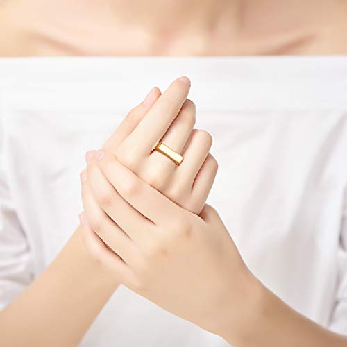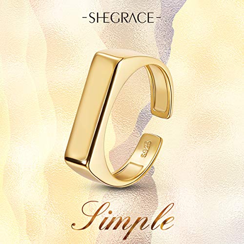 SHEGRACE Anello da Donna, Anello Rettangolare in Argento Sterling 925 Placcato Oro 18 Carati, 17 Mm, Regolabile