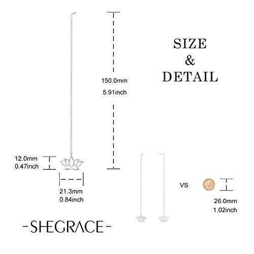 SHEGRACE Orecchini Lunghi Loto da Donna in Argento Sterling 925 Platino, Oro Rosa, Orecchini Pendenti Placcati Oro, 150mm