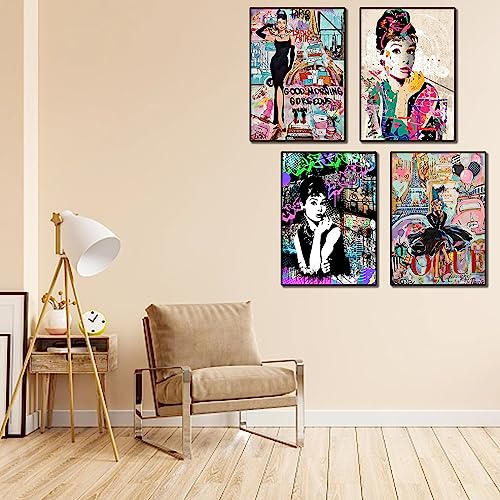 SHEGZHUC 4 Pezzi Diamond Painting Audrey Hepburn 30x40 cm Puzzle Diamond Audrey Punto Croce Audrey Hepburn Paint by Numbers Quadri con Perline Audrey Hepburn 5D Diamond Painting Pop Art Donna Neon