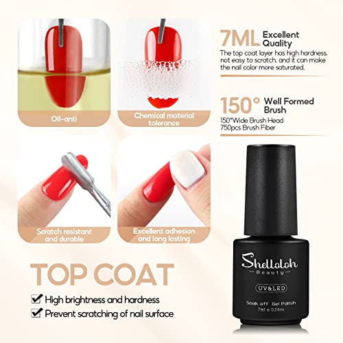 Shelloloh Set Top Coat Base Coat Matte Top Coat No Wipe,Lunga Durata Smalto Semipermanente Unghie per Uso Domestico e in Salone