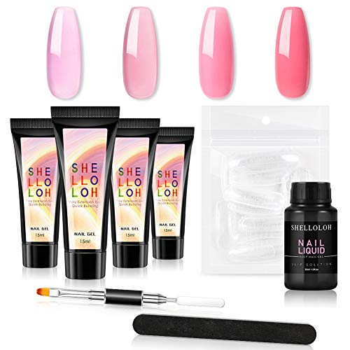 Shelloloh Poly Builder Unghie Gel 4 Colorati Builder Unhgie Gel 15ml con gli Strumenti Necessari per Unghie Estensione Nail Art Gel Completo