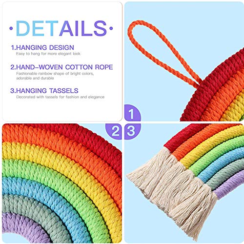 [Materiale]: squisite decorazioni fatte a mano in corda di cotone. Non è facilmente danneggiato e scomodo al tatto. Questo attaccapanni arcobaleno intrecciato può aggiungere personalità e fascino a qualsiasi parete della tua casa.