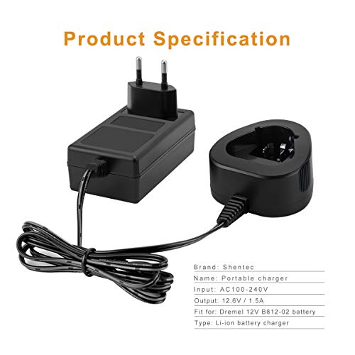 Shentec Li-ion 12V Caricabatterie Compatibile con Dremel Batteria 8200 8220 8300 B812-02 B812-01 (NON per batteria Ni-MH/NI-CD)