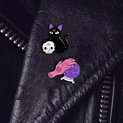 Sherineo Spille per Le Donne, Sfera di Cristallo e Spilla di Forma di Strega Fashion Dress Lega di Gioielli in Cristallo Pin Spilla Design Unico - Teschio di Gatto - 3 * 2.5cm