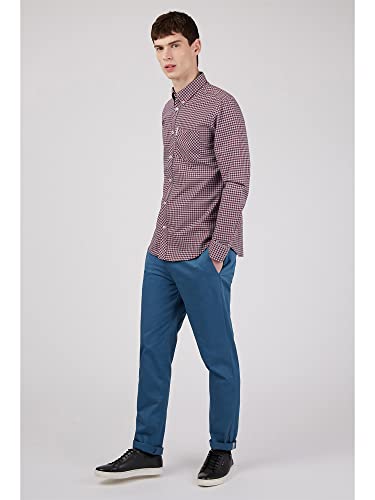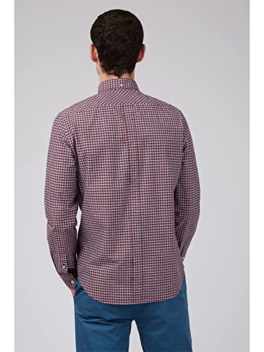 Ben Sherman Camicia casual con bottoni a quadretti a maniche corte da uomo, Claret, L