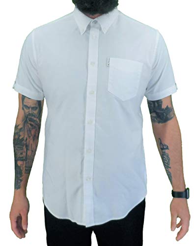 Ben Sherman Camicie Casual - con Colletto - Manica Corta - Uomo (Bianco) XL