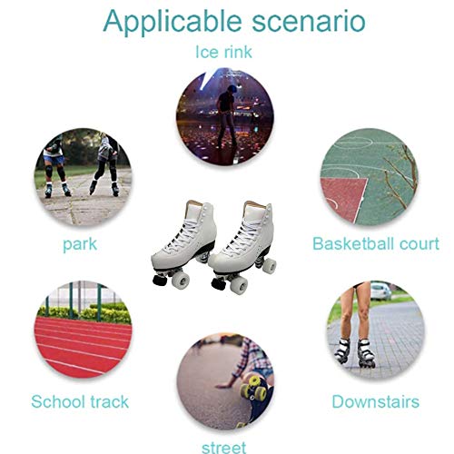 ❤ [Design classico a doppia fila] I nostri pattini derby a rulli classici a doppia fila sono più sicuri e più stabili dei pattini a rotelle in linea retta, ideali per principianti e donne o uomini che vogliono imparare facilmente il pattinaggio a rotelle. Acquistane un paio, puoi goderti il divertimento del pattinaggio a rotelle.