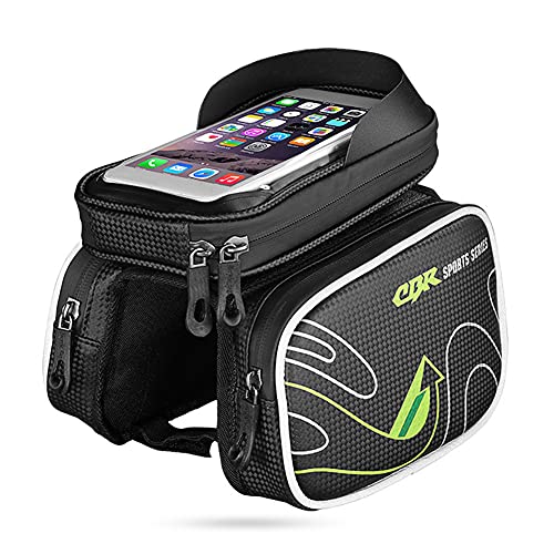 SHHMA Borsa per Telaio Bici, Supporto per Telefono Bici Custodia per Tubo Superiore Anteriore Borsa da Sella per Mountain Bike Borse portaoggetti Attrezzatura da Ciclismo,Verde